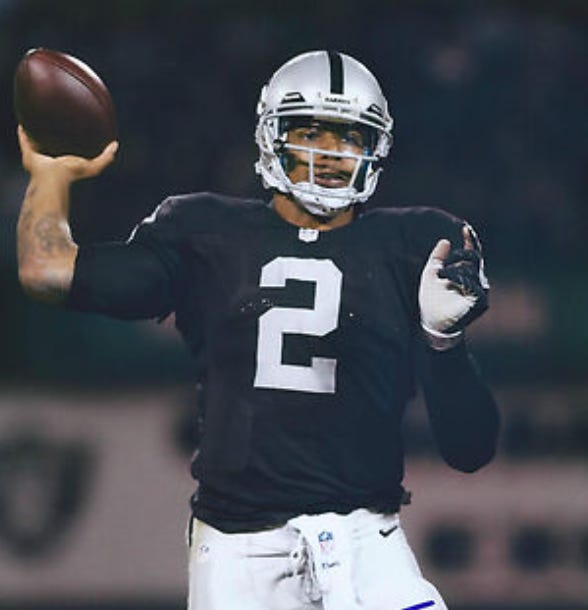 Pryor stands alone as a player who successfully made the position switch after starting his NFL career as a quarterback. Selected by the Raiders in the third round of 2011 supplemental draft, the former Ohio State star started nine games at QB for Oakland during the 2013 season, posting a 3-6 record and throwing seven TDs against 11 interceptions. His highlight as a Raider came not throwing the football: Pryor’s 93-yard TD run on the first play of a Week 8 game against Pittsburgh still ranks as the longest ever by an NFL quarterback. (It’s also the longest TD run by any Raider.)